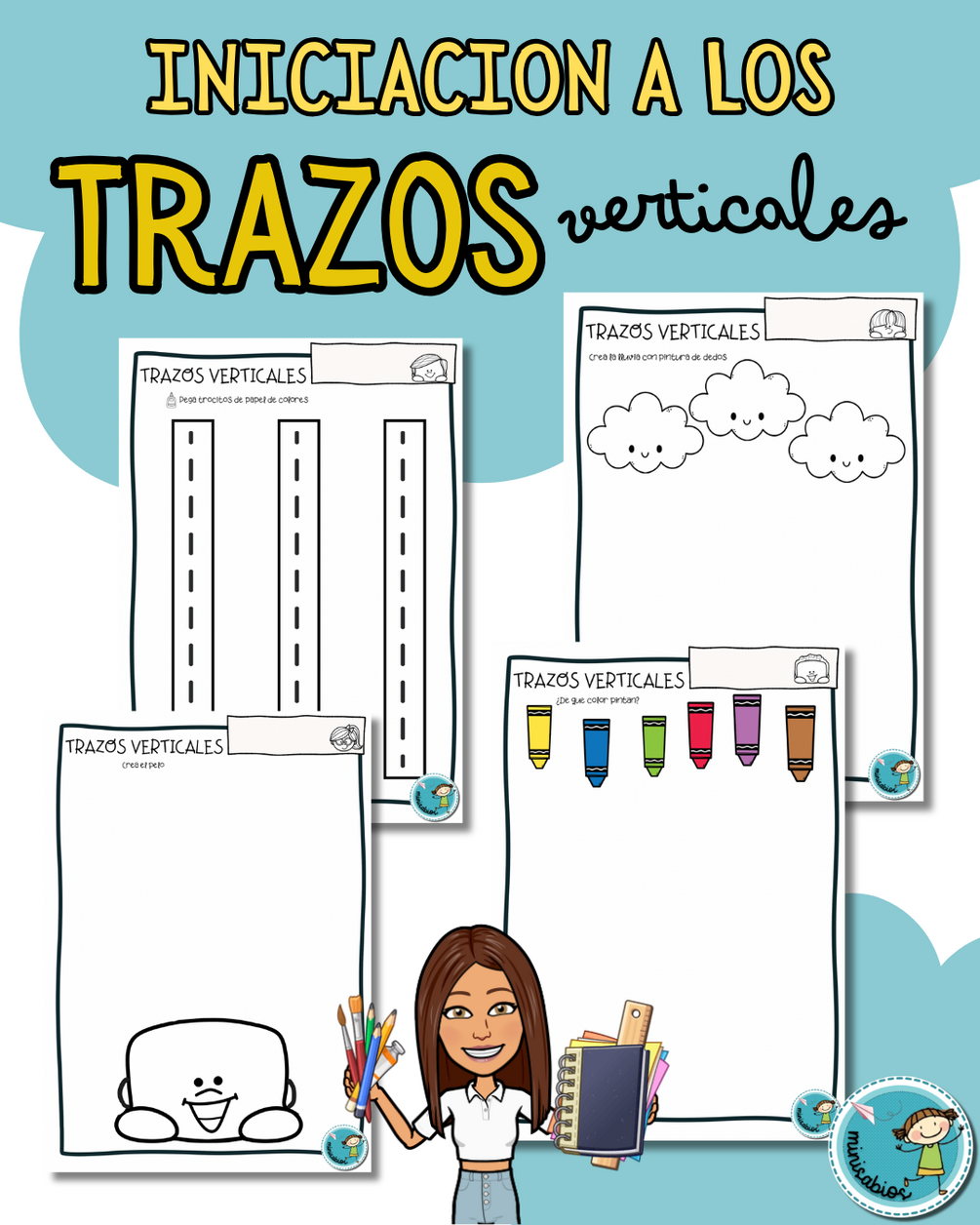 Un PDF con 4 fichas para trabajar los trazos verticales